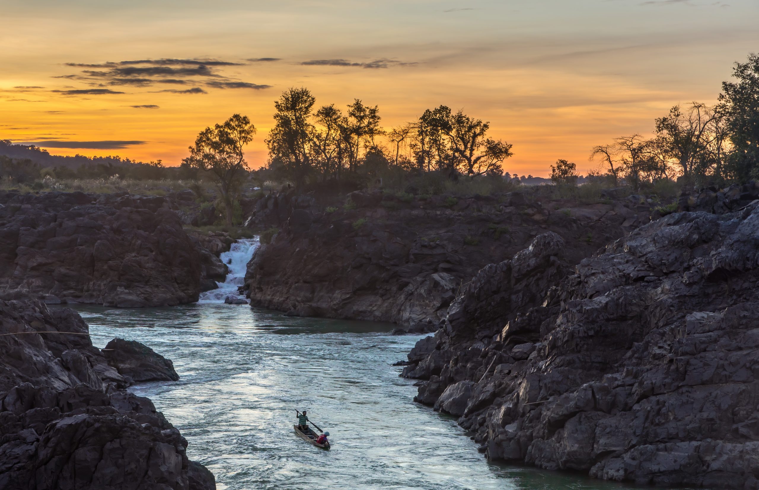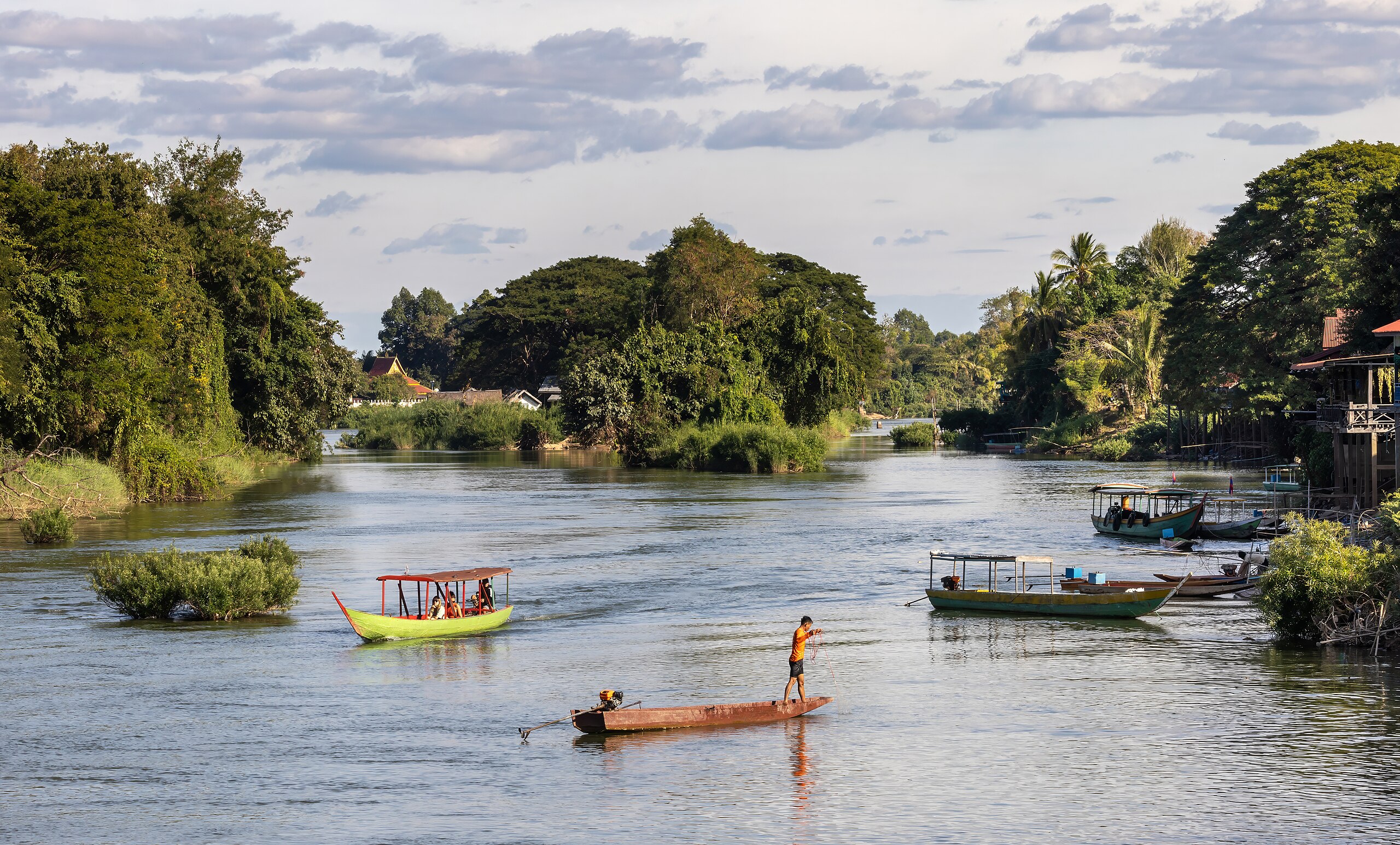 Dag 8. Lunch på egen hand – flygning till Laos, Paksé med visaformaliteter och transfer till Si Fan Don vid Mekong – Khone Phapheng vattenfall – båttur till Don Khone ön där vi bor en natt. Middag.