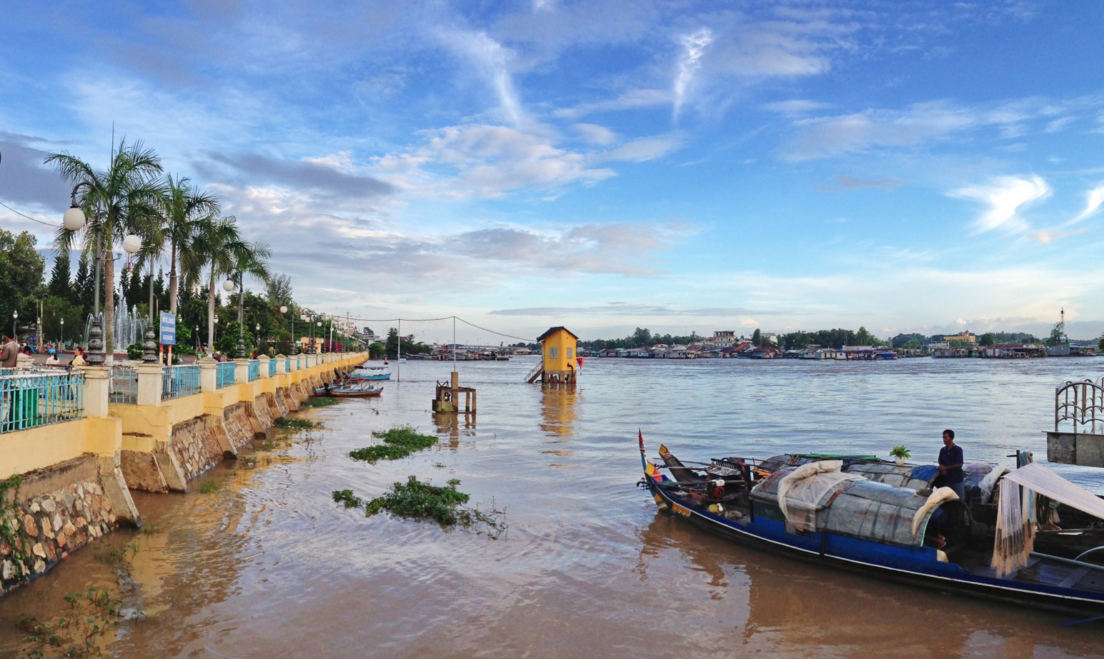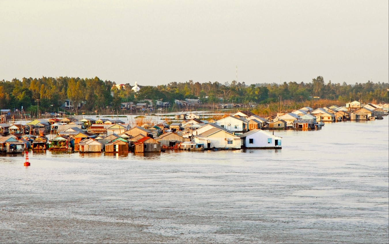 Åter till vår lodge för att checka ut från våra rum och lasta bagaget på vår buss som skall norrut mot Chau Doc vid gränsen till Kambodja. Innan ankomst gör vi en båttur i det natursköna Tra Su Cajuput. Regionen är känd för sin skyddade flora och fauna med bl a 70 arter fågel, översvämmad under regnperioden, och en skönhet med stor biodiversitet där cajuput-träden skuggar oss under båtturen. Under torrperioden med lågt vatten ersätts båtturen med en promenad. Från ett observationstorn kan man se över större delen av parkens 900 hektar skyddade flora. Därefter reser vi till Chau Doc vid Mekongfloden där vi bor med vyer över Hau-floden – en av Mekongs nio armar på Victoria Chau Doc eller liknande.