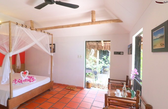 Här bor vi i mysiga rymliga mellanklassbungalows direkt på stranden. Alla har inte havsutsikt, med samtliga är belägna nära strandlinjen. Bungalowen är utrustad med dusch och wc, fläkt och myggnät. Endast frukost ingår. Varje bungalow har sin egen uteplats med solstolar. Restaurangen ligger på pålar över vattnet, med fin utsikt över viken. På kvällarna kan du njuta av havets läckerheter. Lokala fisksorter som svärdfisk, barracuda, tonfisk och skaldjur serveras färska, utbudet varierar utefter fiskarnas morgonfångst.