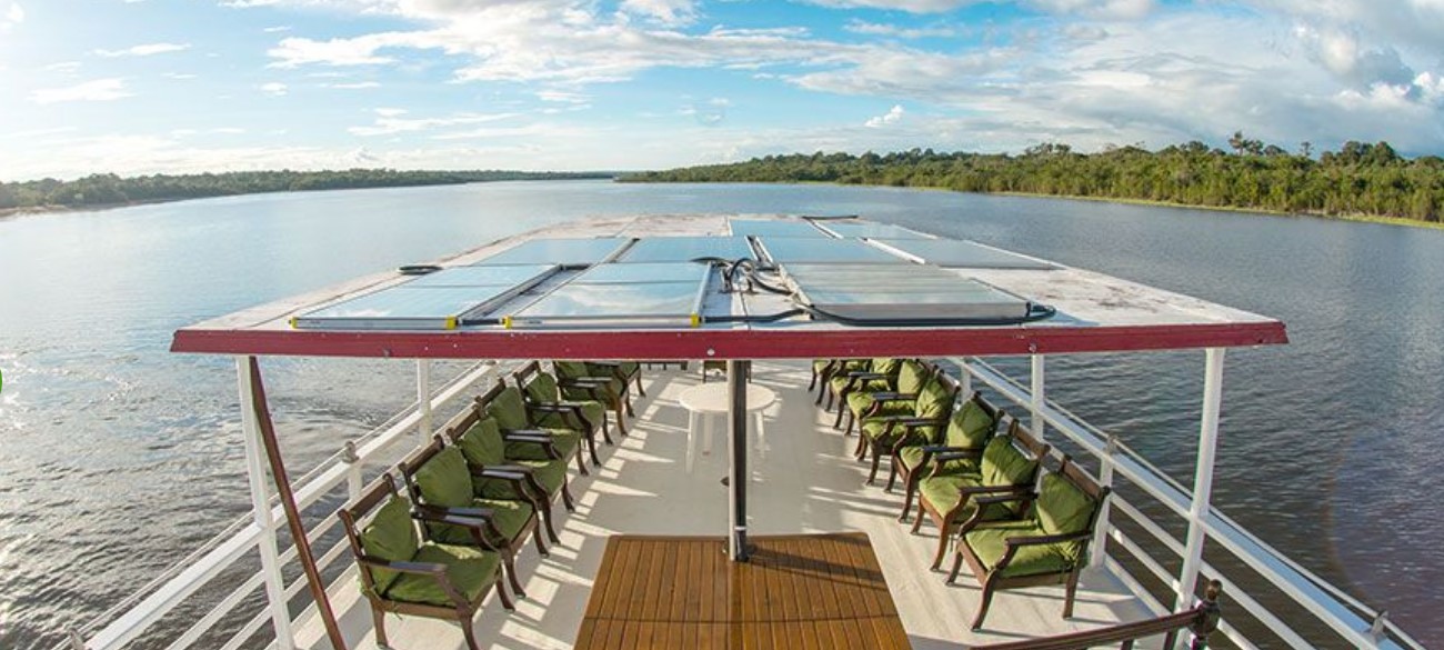 Välkommen på ett intimt och exklusivt möte med en av världens mest kända vildmarker under mycket bekväma former. När vi glider genom vattnet i ett av världens mest kända men ändå lite kända ekosystem rör vi oss i ett område mycket känt för sin biologiska mångfald med rosa floddelfiner, flera arter papegojor samt andra arter fågel och under vår kryssning är det stor chans att få se sengångare, vrålapor, spindelapor och tamariner.