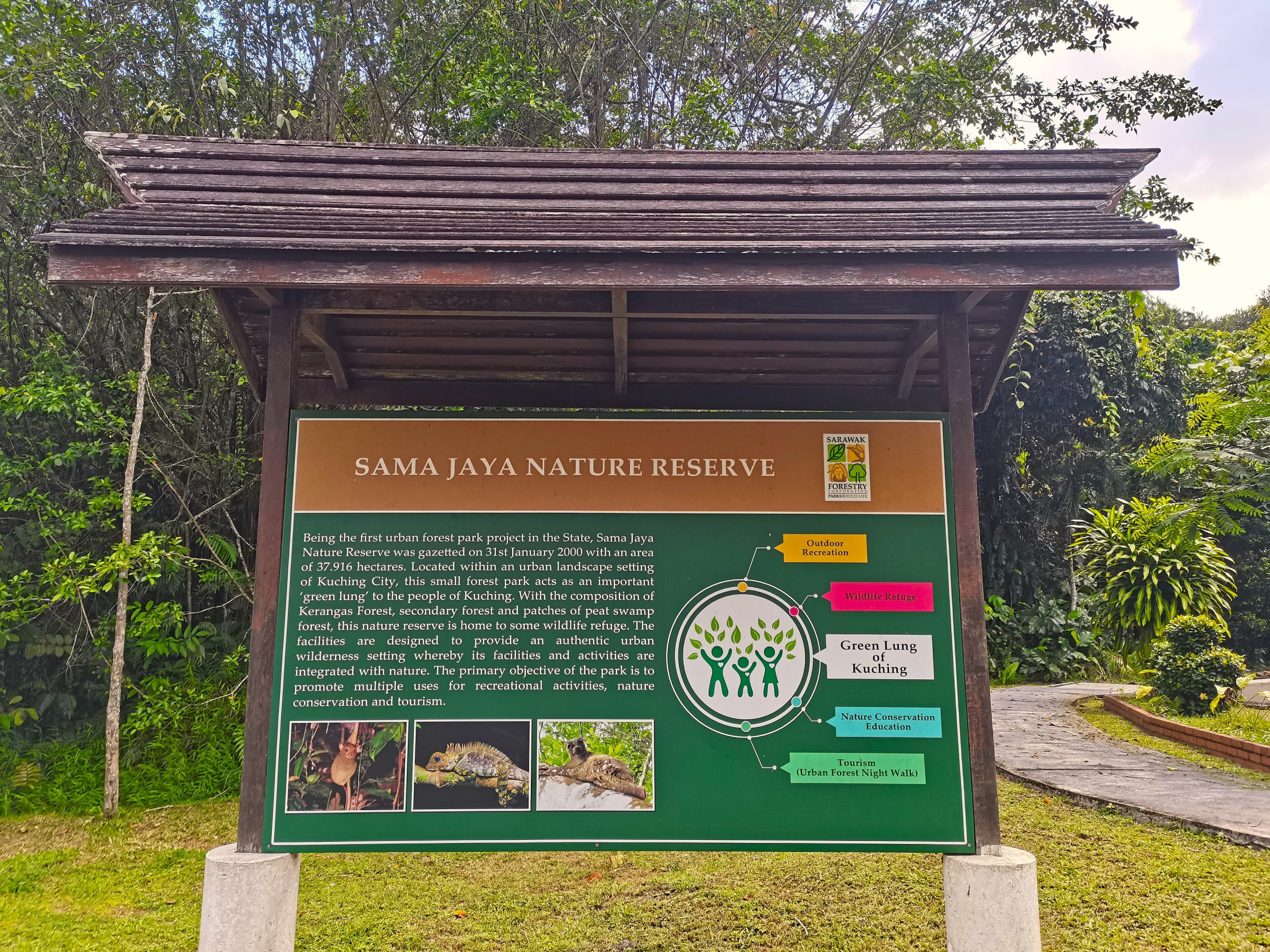 Under tidig kväll i anslutning till solens nedgång skall vi studera nattlivet i skogen. Bekvämt nog finns ett bra tillfälle för det i stadsreservatet Sama Jaya, en kort färd från vårt hotell. Längs skogslederna omges vi av de lokala keranga-träden där vi försöker finna nattlevande djur och sovande fåglar under en spännande kvällstur. Lunch och middag på egen hand.