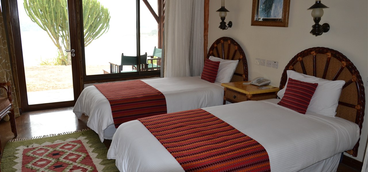 På eftermiddagen åker vi iväg till Mweya för att äntra båtarna som åker längs med Kazingakanalen och ut mot Lake Edward. Här vimlar det av flodhästar och krokodiler som plaskar runt eller vilar på stränderna. Det kommer ned elefanthjordar och bufflar för att dricka. Här finns även vattenbock, topi- och kobantilop. Har man tur kan man få se en familj med jätteskogssvin, förutom vanliga vårtsvin. Det är fullt av skarvar, olika vadare, hägrar, pelikaner och storkar och skrikhavsörnar. Här brukar man även kunna finna den märkliga saxnäbben skumma ytan fram och tillbaka och i luften hänger massor av ryttlande gråfiskare. Ytterligare en kväll på Buffalo Safari Lodge där vi kan sitta vid brasan under stjärnorna och diskutera alla dagens spännande upplevelser.